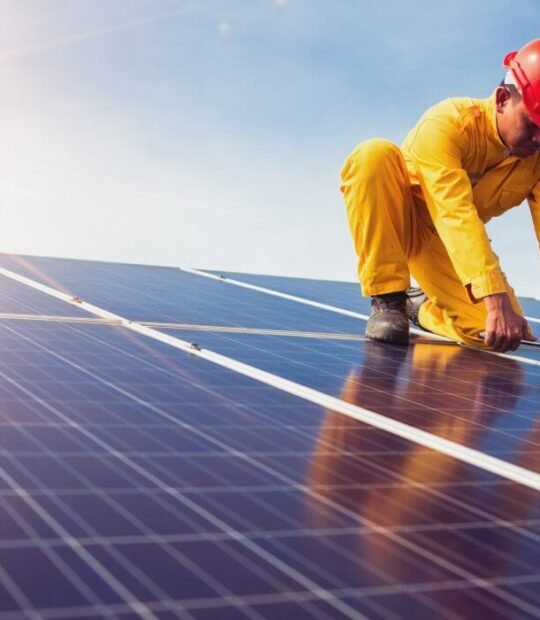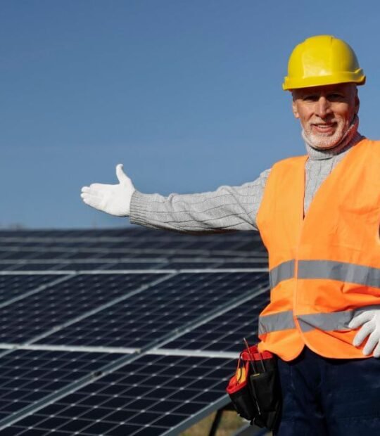 Water Flow Discharged Hydro Power Light Energy Saving Solar Energy Man Worker Frild Solar Energy Wearing Protection Equipment Solar Energy Alternative Energy Plant Solar Energy Repairing Solar Panel Solar Energy